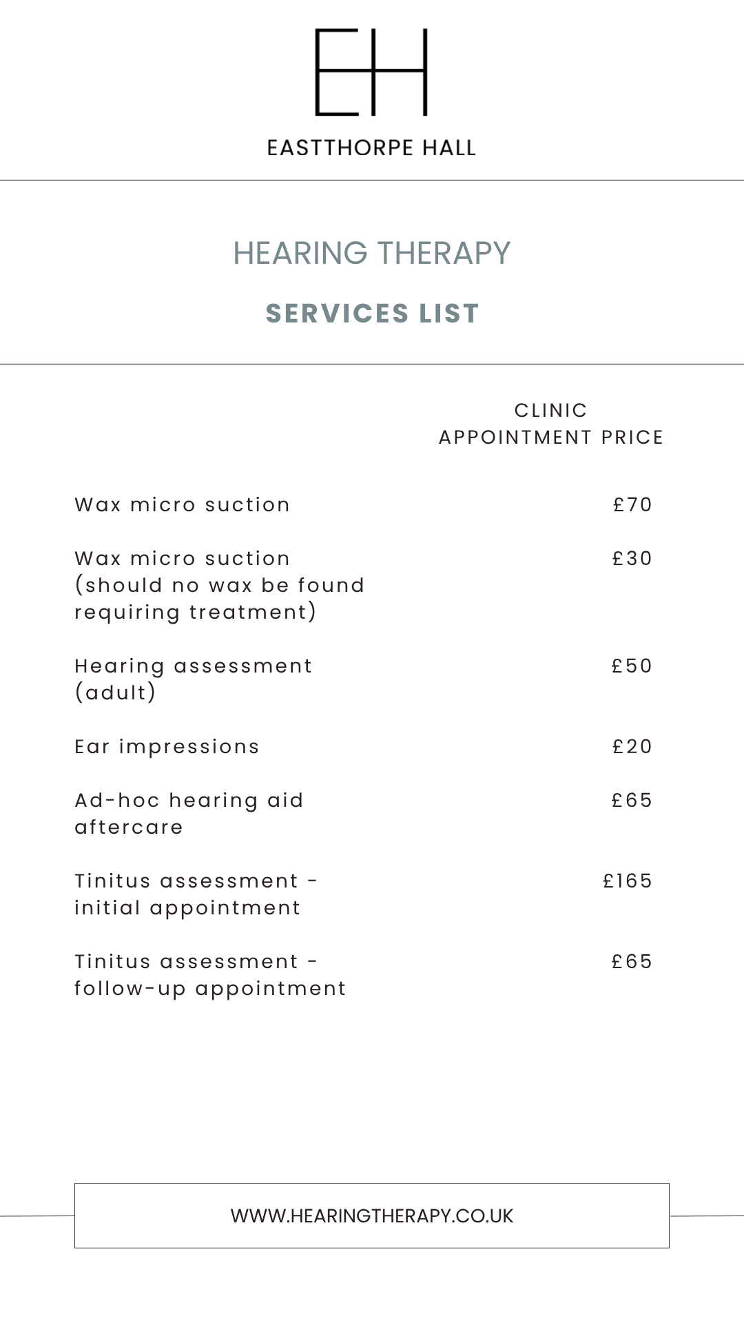 If you book into our clinic for a hearing test there is a £50 fee refunded when making a purchase of £500 or more. For a home visit, we do charge £30 but this is also refunded if you go ahead with a >£500 purchase.